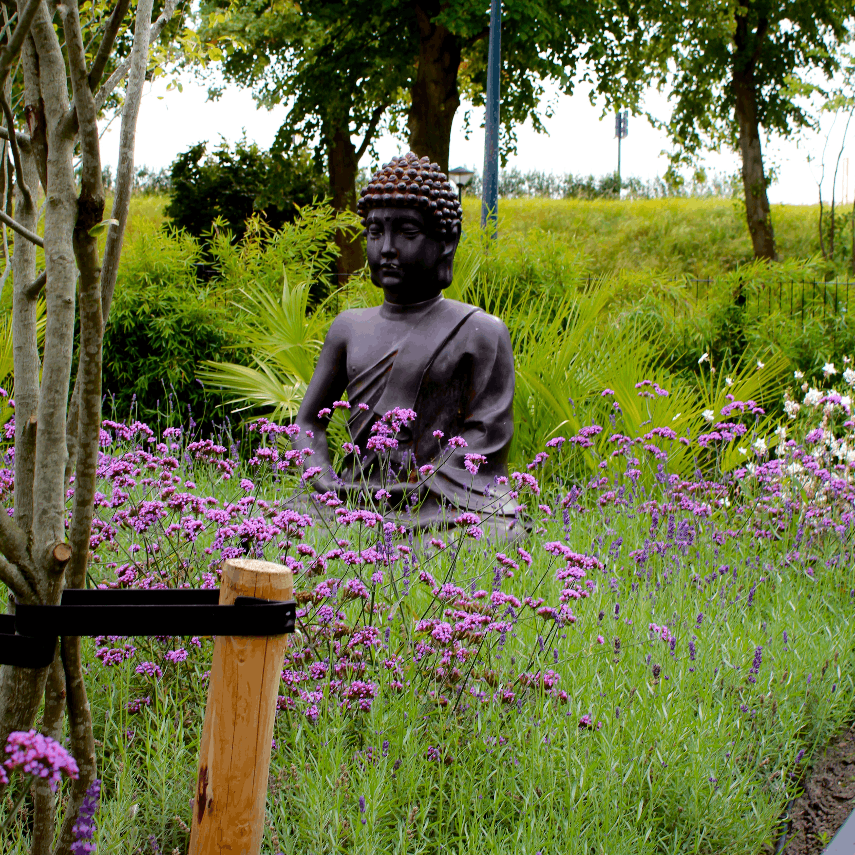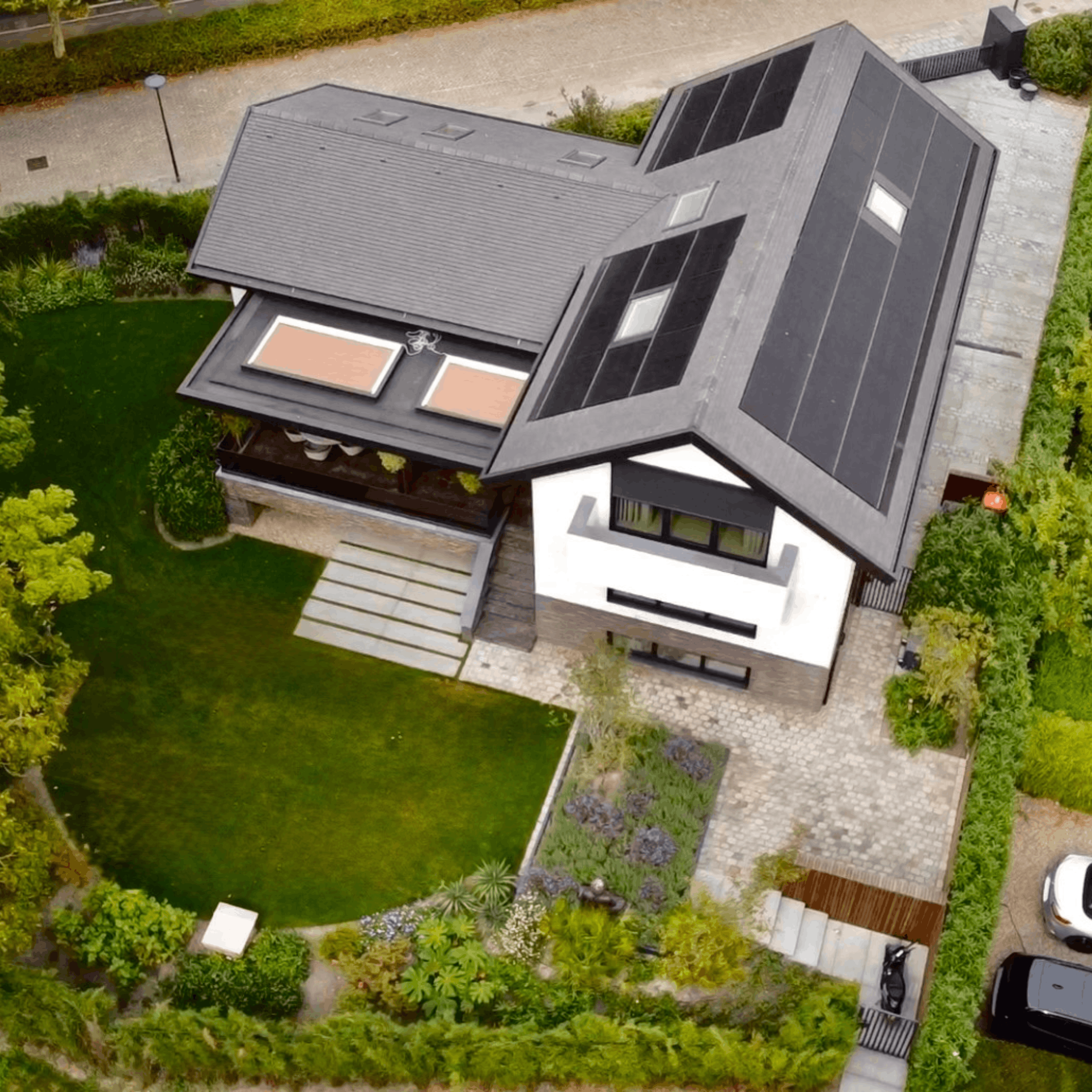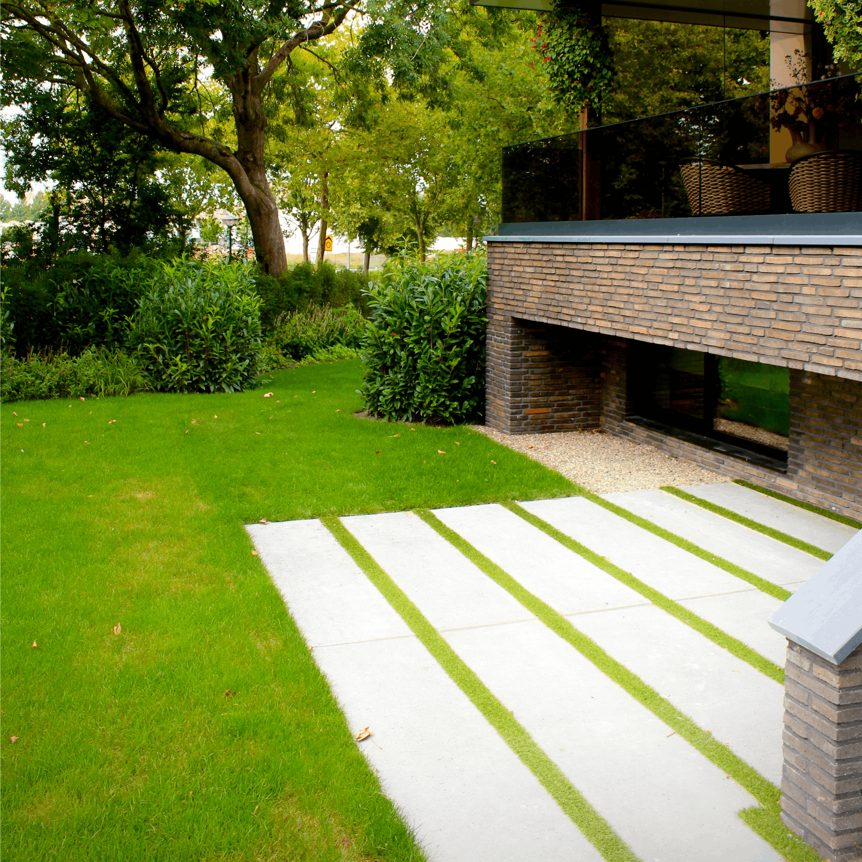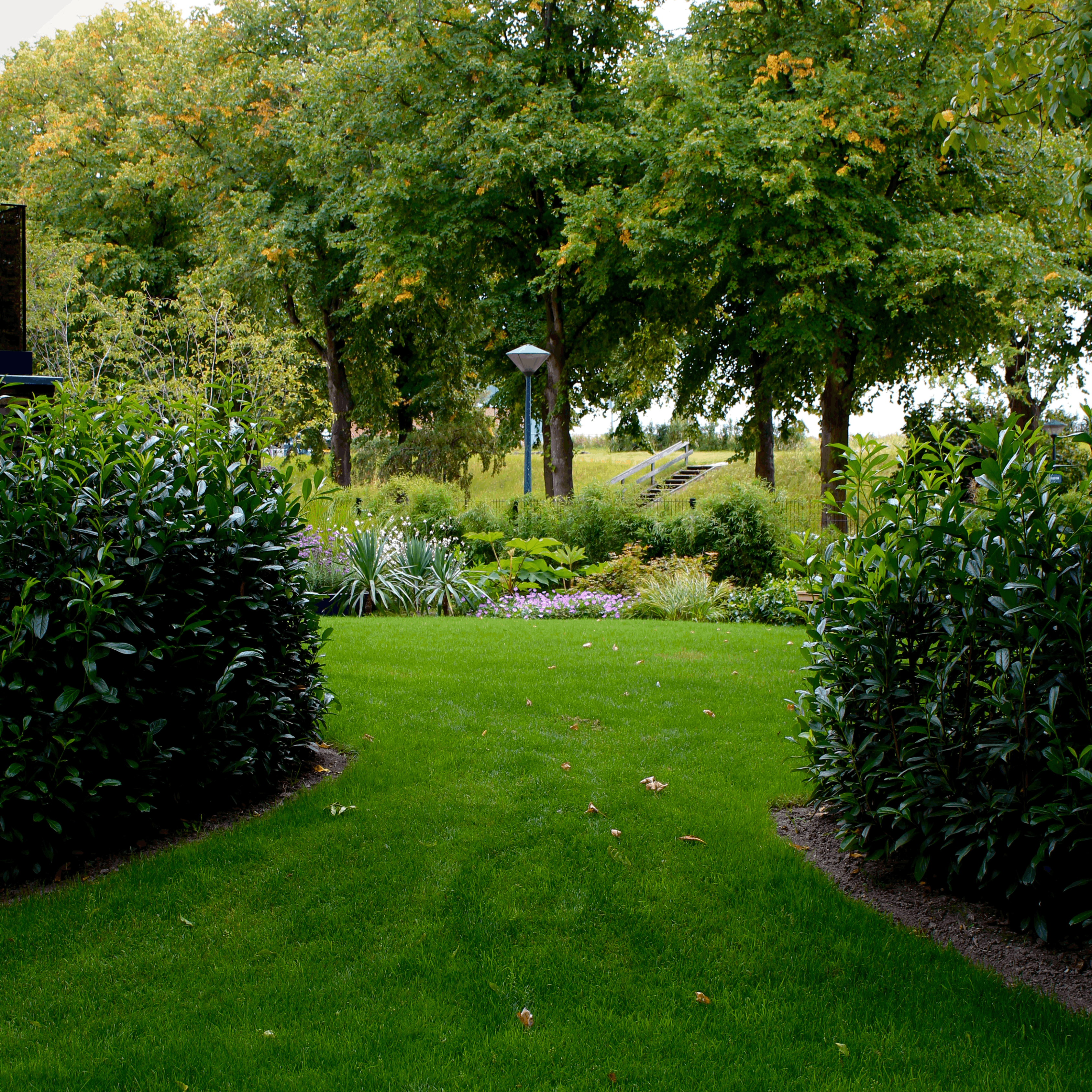 Een ruimtelijke tuin rondom het huis, precies op de grens van stad en stilte. Strakke lijnen leiden je langs verschillende sferen, waar beplanting en materialen zorgvuldig zijn gecombineerd. Een tuin waarnaar toch nog even naar om wordt gekeken wanneer u het perceel verlaat.